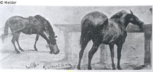 Pferdestudie. Öl auf Malpappe. Bez. Links u. A.v.M.Erinnerung. 16,5x40cm