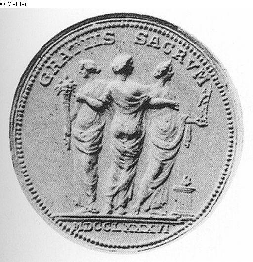 Rs.: Die drei Grazien mit Füllhorn, Palladium und kleinem Rauchaltar; Umschrift: GRATIIS SACRVM / MDCCLXXXVI