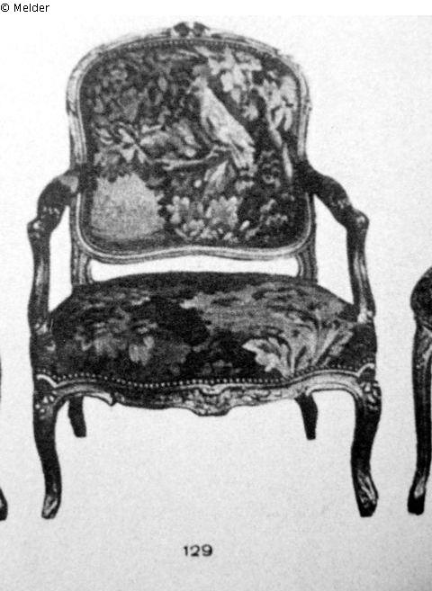 Mit Tapisserie-Bezug. Das geschnitzte und vergoldete Gestell im Régence-Stil. Auf Sitz und Lehnen alter Tapisserie Bezug. Im Régence-Stil.