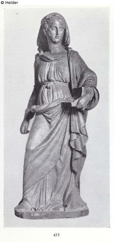 Stehende Frau in faltigem Gewand