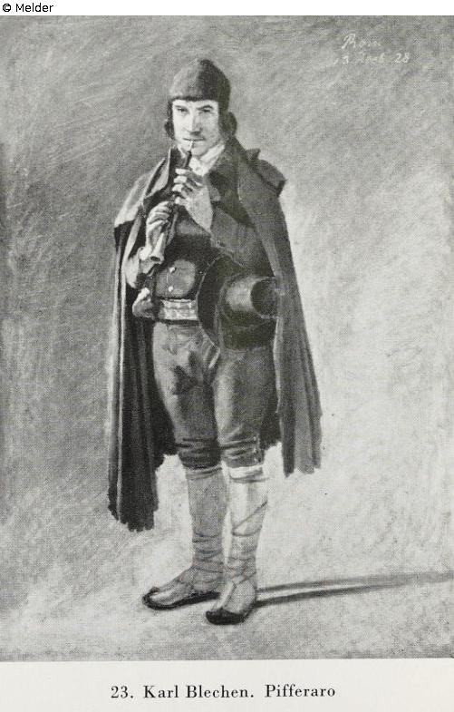 Stehender Pifferaro. Rechts oben bezeichnet: "Rom 13. Dez. 28"
