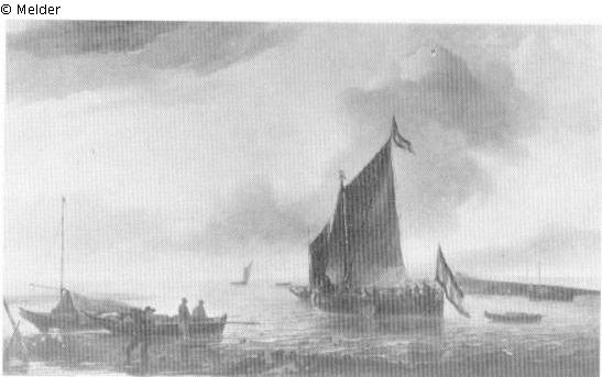 Tafelmalerei: Bild: Küste & Segelschiff, Segelboot & Schiffe (generell) : Hochsee- und Küstenfischerei; Küste & segeln & Schiff : Hochseefischerei; Küste; Signatur: Am Boot: IV Cappell (...); Maße: 45 x 71 cm