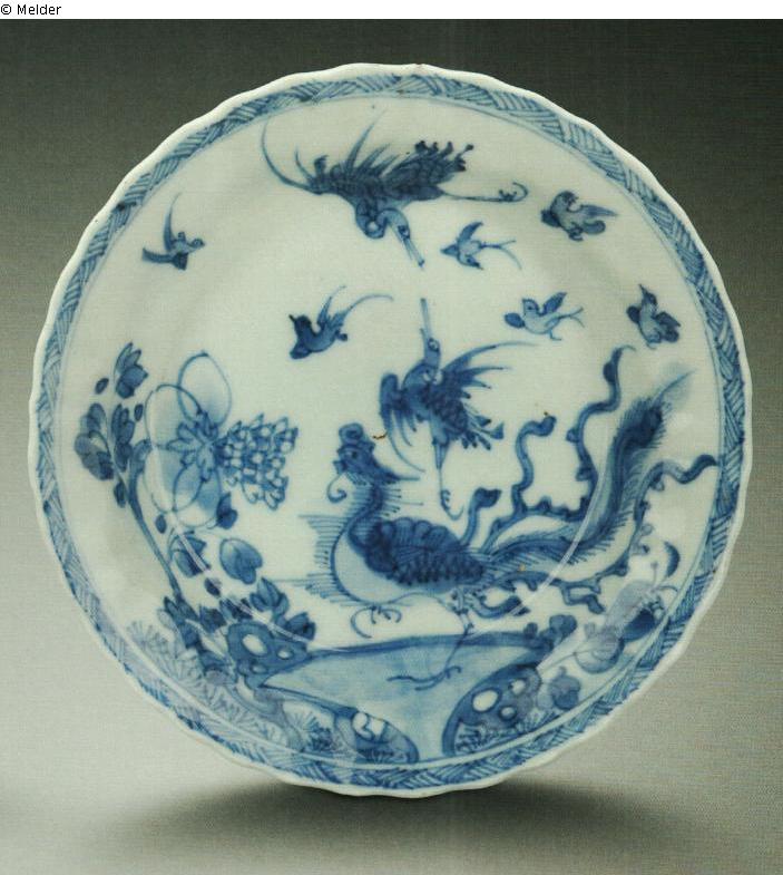 Keramik (Porzellan) ; Unterglasurfarbe kobaltblau / Emaillemalerei