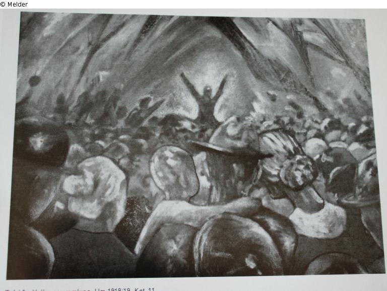 Werkverzeichnis Otto Nagel, Die Gemälde und Pastelle, bearbeitet von Sibylle Schallenberg-Nagel und Götz Schallenberg, Berlin, DDR 1974, Nr. 11; sowie Erhard Frommhold: Otto Nagel, Zeit, Leben und Werk, Henschelverlag 1974 ab S. 152 (Im dunklen Deutschland), Bildteil 5 Volksversammlung schwarz/weiß, 6 Studien zu Volksversammlung in Farbe