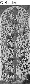 Zwei Standflügel des sogenannten Gothaer Tafelaltars (Inv.Nr. SG 5): der Stammbaum Christi, der als gewundener Weinstock dargestellt ist, aus dem die einzelnen Personen wie Knospen herauswachsen. Auf dem linken sind die Vorfahren von Adam bis Salomo und auf dem rechten von Jesse bis Maria zu finden, jeder namentlich auf den Blättern bezeichnet. Zusätzliche Schriftfelder auf der Mittelachse bieten eine zeitliche Einordnung der Ahnen Jesu.
