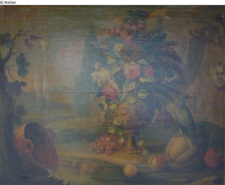 see figure G 2137, 2135; The decorative wall construction have no outstanding picturesque quality. The frames are drilled (→ G 2140). Maybe it is a kind of frieze of pictures from a country mansion. Due to the similar style of painting, framing and suspension of the paintings following works are likely from the same possession: G 2138 / G 2139 / G 2140 / G 2141 / G 2142 / G 2143 / G 2144 / G 2146