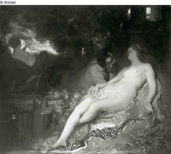 Found-Object Report | Object report Bacchanal (Satyr and Nymph) Lost Art-ID220829 Previous Next Artist / Creator Keller, Albert von Birth 1844.04.27, Gais (Bruneck) Death 1920.07.14, München Place of activityMünchen TitleBacchanal (Satyr and Nymph) Dating1869Object typePaintingGroup of reported objectsPaintingMaterial / TechniqueOil ; Canvas / painted Height 111.00 cm Width 127.00 cm Inventory numbermü9243Description Signature: Albert Keller; Female nude from right to left looking at a faun; in the left background a Bachantian boy. Read more Read less Holding Kulturgüter aus dem ehemaligen ReichsvermögenPublished since2001 Contact Kunstverwaltung des Bundes Herbert-Bayer-Straße 5 13086 Berlin Germany E-Mailprovenienzforschung@kvdb.bund.deHomepagehttp://www.kunstverwaltung.bund.de