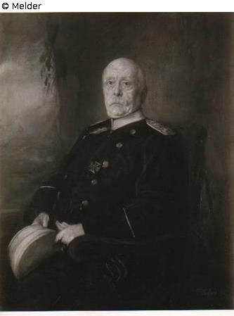 1897 Creation of the painting by the artist. 1908 Proof of 2 paintings ("Bismarck in Kürassieruniform mit Mütze") from the possession Mrs. of Lenbach in the entrance and storage book of the commissioned goods of the gallery Heinemann without measurements. 1938 (presumably) Purchase of the painting by the Reichskanzlei from the Galerie Almas-Dietrich, Munich. 1938 Use of the painting in "Führerbau" Munich, Arcisstraße 5 for equipment purposes in the "Führer" room, room 125. 1945 Takeover of the painting from the "Führerbau" Munich Arcisstraße 5, to the CCP Munich. Registration under the no. 7487. 1965 handover of the painting to the Federal Foreign Office, use of the painting for equipment purposes. There is no evidence of a Nazi persecution-related loss of assets. Because of the gaps in the history of the provenance, however, such an approach can not be completely ruled out.