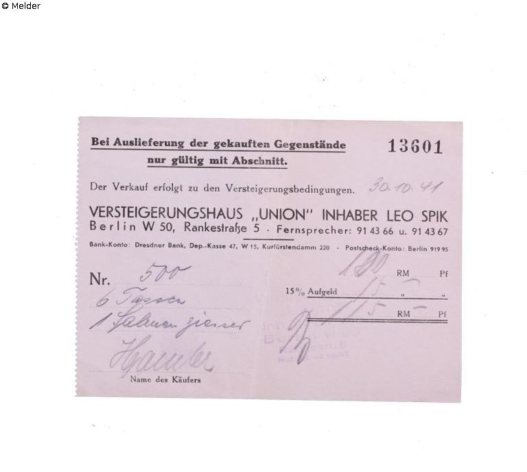 undated – 16 October 1941 Stored by the Valentin family at the Jakob u. Valentin shipping company in Berlin. The shipping company had to hand it over to the Gestapo on 16 October 1941; 16 October 1941 – 30 October 1941 Auctioned by the Union auction house, Berlin; 31 October 1941 – 11 February 1983 Owned by the Hammler family, purchased at the Union auction house, Berlin; 11 February 1983 – 30 November 1999 Owned by Lucia Lutterberg, acquired through inheritance from Hedwig Hammler, Berlin; Since 30 November 1999 Owned by the Spandau City History Museum, Berlin, purchased from Lucia Lutterberg, Berlin