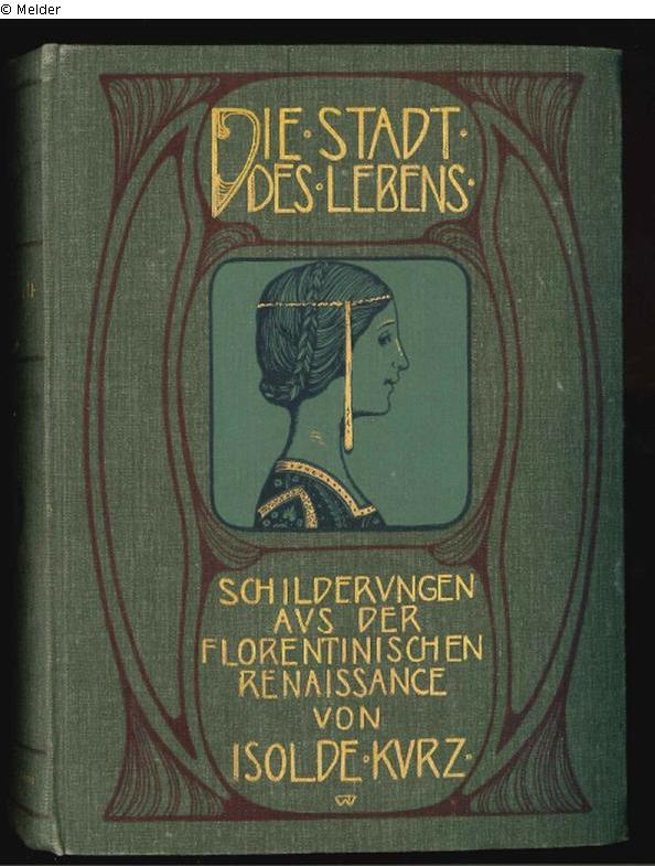 First edition. Not trimmed at sides and bottom. Gold-cut edge at top. Title embossed in gold. Ex-libris of Marie von Eschenbach and postcard with dedication by Isolde Kurz glued into the book.