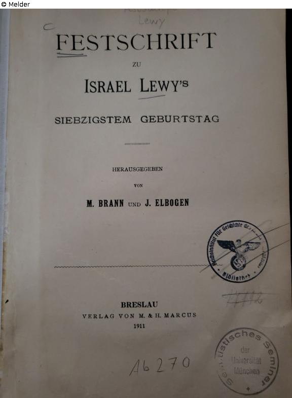 Festschrift zu Isareal Lewy`s siebzigstem Geburtstag