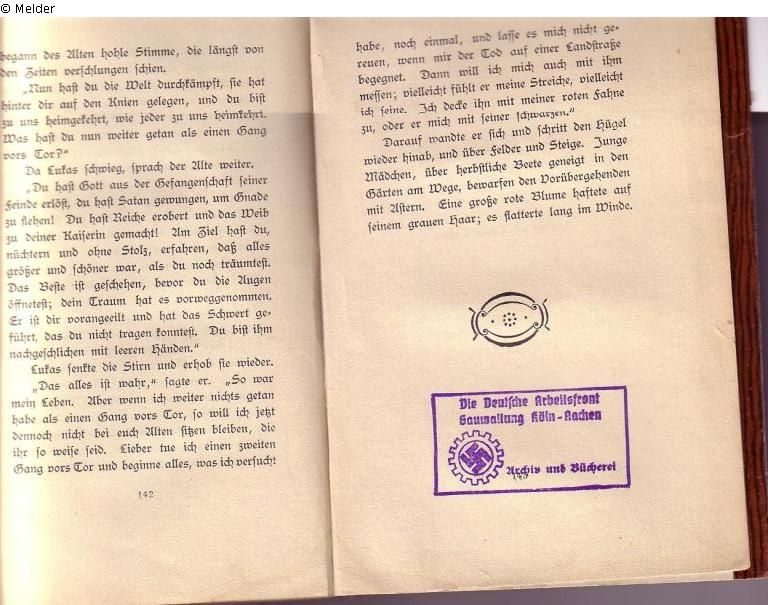 Das Buch stammt ursprünglich aus der Zentralbibliothek der Freien Gewerkschaften Köln. Der Besitzstempel wurde überstempelt mit dem Stempel "Die Deutsche Arbeitsfront Gauverwaltung Köln-Aachen Archiv und Bibliothek". Das Buch wurde 1951 in der USB Köln als Geschenk inventarisiert. Lieferant unbekannt.
