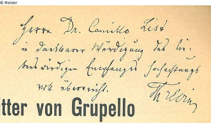 Nazi loot 1.) The Palatine State Library acquired the book in 1942 in Antiquariat Alfred Wolf, Vienna for 2.50 RM. 2.) number "39/100" 3.) dedication "Herrn Dr. Camillo List in dankbarer Würdigung des liebenswürdigen Empfangs hochachtumgsvoll überreicht Th[?] El[?]"