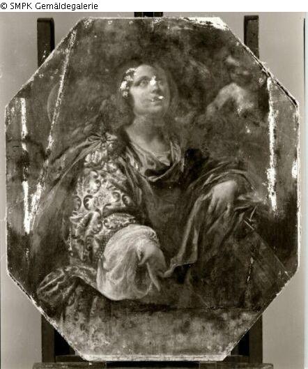 (zeitweilige) Verwaltung; Berlin; (öffentliche) Sammlung; Staatliche Museen zu Berlin - Preußischer Kulturbesitz; Gemäldegalerie ; Person: Zuckerschwerdt, A. ; ; Vorbesitzer?; Berlin; (private) Sammlung; Person: Zuckerschwerdt, A.Katalogtext: 12 Gemälde, die vermutlich von Privatbesitzern zu unbekannten Zeitpunkten in das Depot der Gemäldegalerie/Staatliche Museen Berlin (Ost) gelangt sind. Fünf Bilder mit demselben Leitbuchstaben (Nrn. 3, 6, 8, 10, 11 am 25. 02. 1980 an die Nationalgalerie überwiesen). Geismeier, Fremdbesitz, 1999, S. 54 Katalogtext: Vermutlich identisch mit dem in einer handschriftlichen Inventur-/Revisionslinste der Gemäldegalerie vom 16. 4. 1959 unter Nr. 9 genannten: "'Frauenporträt', 8eckig, alte Rentolierung, Leinwand 124 x 103, Bes. A. Zuckerschwerdt, Kapt.z.See a.D., Berlin Charlottenburg, Steinplatz 3". Geismeier, Fremdbesitz, 1999, S. 58