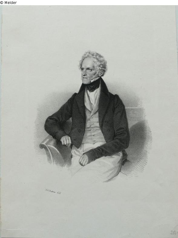 Three-quarter portrait, Sitting man. Signed on the stone, numbered lower left: Kriehuber 836; on verso lower left collector's mark Heinrich Schwarz [Lugt 1372, print in blue]; inscribed on verso lower right: Joh. Karl Graf Dietrichstein 1775-1864 | W. 387 [catalogue raisonné Wurzbach].