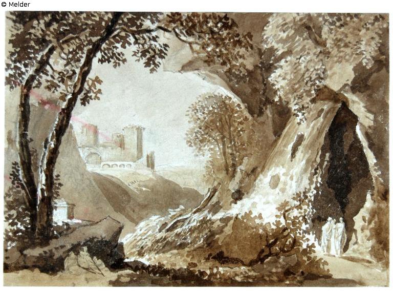 Found-Object Report | Object report Landscape with castle, on the right two figures in front of rocks Lost Art-ID579267 Previous Next Artist / Creator Kobell, Franz Innocenz Josef Birth 1749.11.23, Mannheim Death 1822.01.14, München TitleLandscape with castle, on the right two figures in front of rocks Dating1764/1822Object typeGraphicGroup of reported objectsGraphicMaterial / TechniqueGraphite ; Colour sepia / drawn (brush) ; washed Height 13.70 cm Width 19.30 cm Inventory numberC 1944-360Holding Erwerbungen für das sogenannte Führermuseum in LinzProvenance Unknown origin; probably acquired for the "Sonderauftrag Linz" Read more Read less Published since10.09.2018 Contact Staatliche Kunstsammlungen Dresden Kupferstich-Kabinett Taschenberg 2 01067 Dresden Germany Phone(0351) 4914 3210E-Mailkk@skd.museumHomepagehttps://www.skd.museum Contact DirektionPhone(0351) 4914 3210E-Mailkk@skd.museum