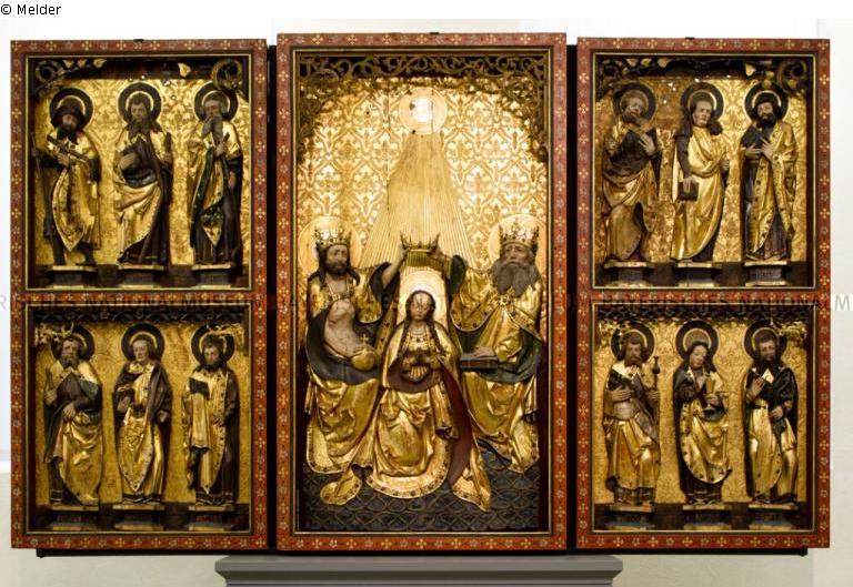 Provenienzrecherche: laut Restitutionskartei (Eingangskarteikarte der Münchner Nummer 6386; Bundesarchiv, B323/658): "1/2.6.1937 Versteigerung J. Böhler, München, Kat. Nr. 38 (aus dem Besitz der Staatlichen Museen, Berlin). / Von dort an H. Göring." Laut Restitutionskartei (Ausgangskarteikarte der Münchner Nummer 6386; Bundesarchiv, B323/658): "History and Ownership: Hofer: coll. Goering / Besitz seit vor dem Krieg / vielleicht v. Ksthl. Knapp, Berlin". Laut Alte Ministerpräsidentenkartei (Karteikarte der Münchner Nummer 6386; Bundesarchiv, B323/766): "History and Ownership: Hofer: Coll. Goering / pre-war property / vielleicht v. Ksthdlg. Knapp, Berlin?". Ursprünglich in der Kirche von Straußfurt. 1806 wohl in den Besitz der Familie von Münchhausen übergegangen. Wohl um 1870/71, jedenfalls aber vor 1884, durch den Münchner Maler Eduard von Grützner (1846-1925) entweder aus dem Besitz der Familie von Münchhausen oder aus dem Besitz eines bislang unbekannten Klosters (?) erworben. Nach Grützners Tod 1925/26 in den Münchner Kunsthandel gelangt. Zu unbekanntem Zeitpunkt ab 1925/26 und bis 1935 im Besitz der Münchner Kunsthandlung L. Bernheimer KG. Ab 1929 (?) Pfandbesitz der Dresdner Bank. Ab 1933 als Kreditsicherheit der Dresdner Bank (Kreditengagement Bernheimer) mit einem errechneten Ankaufspreis von RM 4.391,00.- (Listenwert: RM 5.400,00.-) in der Verhandlungsmasse der Verkäufe der Dresdner Bank an die Staatlichen Museen Berlin. Mit Kaufvertrag vom 15.08.1935 zwischen der Dresdner Bank und dem Land Preußen an die Staatlichen Museen Berlin für die Skulpturenabteilung des Kaiser Friedrich-Museums (dort nicht inventarisiert). Am 06.09.1935 von der Dresdner Bank aus dem Besitz der Kunsthandlung L. Bernheimer KG übernommen. In der Versteigerung "Kunstwerke aus dem Besitz der Staatlichen Museen Berlin" am 01./02.06.1937 beim Münchner Auktionshaus Julius Böhler ("Kunstwerke aus dem Besitz der Staatlichen Museen Berlin", 01./02.06.1937, Nr. 38): vor der Auktion durch die Staatlichen Museen Berlin zurückgezogen. Im Juli 1937 für RM 3.000,00.- an das Preußische Staatsministerium für Hermann Göring (1893-1946) zur Ausstattung seines Landsitzes 'Carinhall' verkauft. Im 'Göring'-Holzskulptur-Inventar: Nr. 30; im 'Göring'-Holzskulptur-Katalog: Nr. H 158. Der Straußfurter Altar ist zu sehen in der Großen Galerie von 'Carinhall' auf einer Photographie aus einem Photoauftrag Görings an die Photographin Karoline Junkersdorf-Uhlenhuth (1902-1988) aus dem Jahr 1939 (Photoalbum in der Versteigerung des Stuttgarter Auktionshauses Eppli, "Münzen, Briefmarken, Historika in Leinfelden-Echterdingen", 26.11.2016, Nr. 2). [Vgl. Lynn Rother, Kunst durch Kredit. Die Berliner Museen und ihre Erwerbungen von der Dresdner Bank 1935, Berlin/Boston 2017, S. 2 Anm. 7 (dort fälschlicherweise: "Germanisches Nationalmuseum" statt Bayerisches Nationalmuseum), 404 ('Bernheimer'-Liste Nr. 3, Inv.-Nr. 40435)]. Eingang/Receipt (Central Collecting Point München): 02.08.1945; Ausgang/Issue (Central Collecting Point München): 10.06.1949 (Ministerpräsident) - am 18.05.1961 als 'Überweisung aus Staatsbesitz' an die Bayerischen Staatsgemäldesammlungen; von dort am 23.05.1961 vom Bayerischen Nationalmuseum übernommen: Nr. 105 der Übertragungsurkunde Nr. 64 (Skulpturen aus dem Nachlaß von Hermann Göring) vom 29.01.1957/23.02.1957. Eingang/Receipt (Central Collecting Point München): 02.08.1945; Ausgang/Issue (Central Collecting Point München): 10.06.1949 (Ministerpräsident) - am 18.05.1961 als 'Überweisung aus Staatsbesitz' an die Bayerischen Staatsgemäldesammlungen; von dort am 23.05.1961 vom Bayerischen Nationalmuseum übernommen: Nr. 105 der Übertragungsurkunde Nr. 64 (Skulpturen aus dem Nachlaß von Hermann Göring) vom 29.01.1957/23.02.1957./A.G., 2018