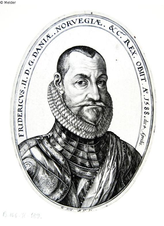 In the oval: inscription "FRIDERICUS II. D. G. DANIAE. NORVEGIAE. &C. REX. OBIIT A 1588. die 4. Aprilis."