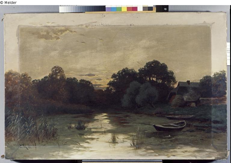 Found-Object Report | Object report River Landscape in the Evening (sunset, dusk) Lost Art-ID429196 Previous Next Artist / Creator Deutscher Monogrammist P.K. TitleRiver Landscape in the Evening (sunset, dusk) Dating1899Object typePaintingGroup of reported objectsPaintingMaterial / TechniqueOil ; Canvas Height 64.00 cm Width 97.50 cm Inventory numberPNM 950Description below left: "P K 99" Read more Read less Provenance unknown Read more Read less Published since13.01.2011 Contact Landesmuseum Hannover Das Weltenmuseum Willy-Brandt-Allee 5 30169 Hannover Germany Phone+49 (0)511 9807-686Fax+49 (0)511 9807-684E-Mailinfo@landesmuseum-hannover.deHomepagehttp://www.landesmuseum-hannover.de Contact Dr. Claudia AndratschkePositionProvenienzforscherin / Sammlungen + ForschungPhone+49(0)511 - 9807 624E-Mailclaudia.andratschke@landesmuseum-hannover.de