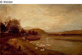 River landscape near Lundenburg / River landscape with geese / Strudengau