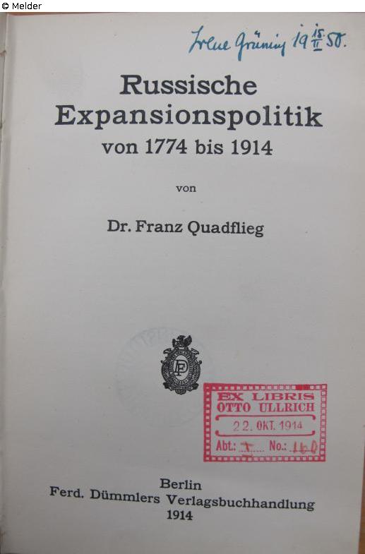 Nazi-looted property, 1914 Otto Ullrich, 1950 Irene Grüning, 1956 Osteuropa-Institut Munich (Grüning estate)