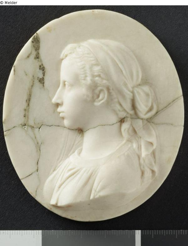 Relief medallion of alabaster, portrait, half-length portrait, view to the right