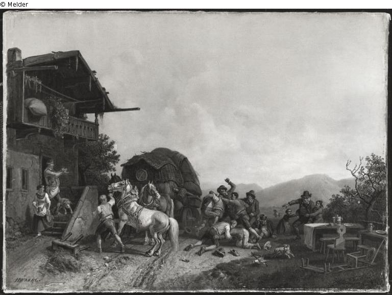 Scuffle in front of of the tavern