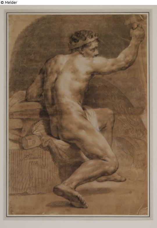Sitting male back nude; Vulcan