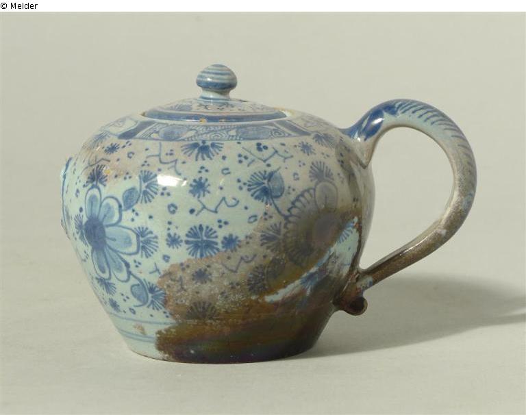This object was part of the collection of Alfred JOSEPH. In 1939, the director of the Mainfränkisches Museum, Clemens Schenk (director 1926-1945), acting on behalf of the Foreign Exchange Office in Würzburg, arranged for the confiscation of a Dutch Baroque cabinet, a Dutch still life, six prints and a total of 19 faiences from Joseph's possession. Among them was this little jug. Schenk had the objects deposited in the museum in a room specially set up for confiscations by the foreign exchange office. On 16 March 1945, the museum building was completely destroyed. According to Max H. v. Freeden (assistant in 1938, curator in 1939, director at the Mainfränkisches Museum from 1949 to 1978), only one object from the Joseph Collection was saved from the rubble of the former museum building, albeit damaged, namely the "Bayreuth, Teekännchen Marke BP".