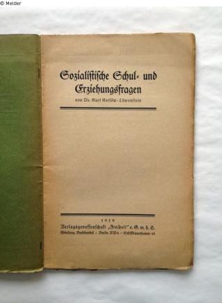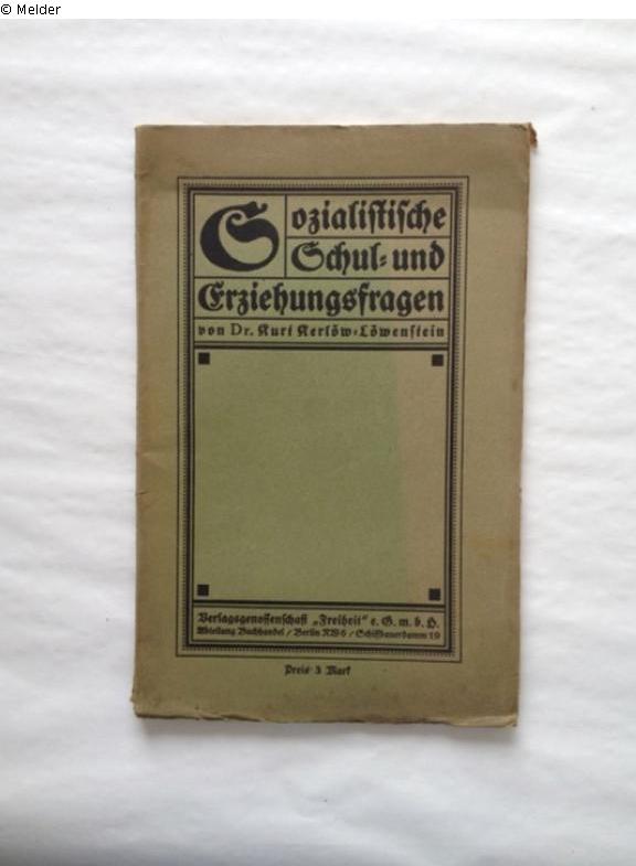 Found-Object Report | Object report Sozialistische Schul- und Erziehungsfragen Lost Art-ID520882 Previous Next Author Kerlöw-Löwenstein, Kurt Printer Buchdruckerei Strauß, Berlin Publisher Verlagsgenossenschaft "Freiheit" TitleSozialistische Schul- und ErziehungsfragenPlace of releaseBerlin Date of publication1919Object typeBookGroup of reported objectsLibrary objectsSignatureo.Nr.Provenance unknown Read more Read less Published since11.08.2014 Contact Provenienzforschung, Hausarchiv, Bibliothek Potsdam-Museum - Forum für Kunst und Geschichte Am Alten Markt 9 14467 Potsdam Germany Phone+49(0)331 - 289 6821Fax+49(0)331 - 289 6808E-Mailmuseum-geschichte@rathaus.potsdam.deHomepagehttp://www.potsdam.de/potsdam-museum