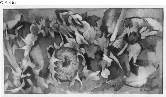inscription lower right: "H.Nauen"; verso: sticker of Gallery Alfred Flechtheim, Düsseldorf, handwritten note "Jammers, Krefeld, Bismarckstr. 8", adhesive label with inscription "Sonnenblumen o.J. Öl auf Leinwand", label with "A F" and the numbers "D 6848" and "C 1421", handwritten note "F 1177".