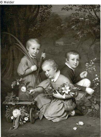 Found-Object Report | Object report Three princes of Hanau in a garden with flowers Lost Art-ID565753 Previous Next Artist / Creator Embde, August von der Birth 1780.12.02 / 1780.12.04, Kassel Death 1862.08.10, Kassel Place of activityKassel TitleThree princes of Hanau in a garden with flowers Dating1839Object typePaintingGroup of reported objectsPaintingMaterial / TechniqueOil ; Canvas / painted Height 134.00 cm Width 101.00 cm Inventory numbermü10655Description Signatur: August von der Embde 1839Links kleiner Handwagen, dahinter ein Knabe; rechts davon hockendes Mädchen und hockender Knabe. Im Hintergrund ein Haus. Read more Read less Holding Kulturgüter aus dem ehemaligen ReichsvermögenPublished since13.12.2016 Contact Kunstverwaltung des Bundes Herbert-Bayer-Straße 5 13086 Berlin Germany E-Mailprovenienzforschung@kvdb.bund.deHomepagehttp://www.kunstverwaltung.bund.de