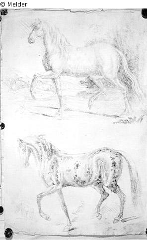 Found-Object Report | Object report Two horses Lost Art-ID219989 Previous Next Artist / Creator Rugendas, Georg Philipp (2) Birth 1701.09.07 Death 1774, Augsburg Place of activityAugsburg; Venedig TitleTwo horsesObject typeDrawingGroup of reported objectsGraphicMaterial / TechniqueChalk / drawn Height 38.50 cm Width 24.50 cm Inventory numbermü44790/90Description Übereinander nach links, beide die linke Vorderhand hebend. Read more Read less Holding Kulturgüter aus dem ehemaligen ReichsvermögenPublished since2001 Contact Kunstverwaltung des Bundes Herbert-Bayer-Straße 5 13086 Berlin Germany E-Mailprovenienzforschung@kvdb.bund.deHomepagehttp://www.kunstverwaltung.bund.de