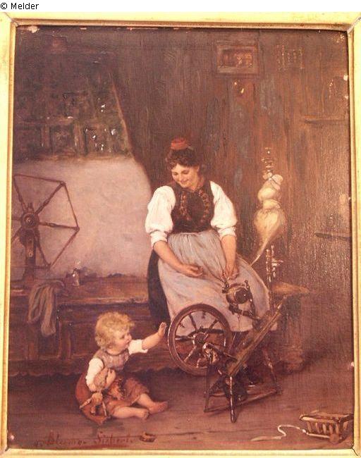 Figürliche Darstellung; signiert: "Blume-Siebert"; Rückseite: Stempel auf der Tafel mit kleinem Engel und Inschrift "Schutzmarke"; sowie weitere Kennzeichnung: "Deposé sg.dg.: reg. Trade mark"; ebenfalls auf der Tafel Inschrift in Tinte: "XCVII 828"