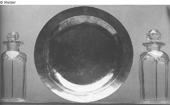 Search Request | Object report 3 Flakons und Silberschale Lost Art-ID405978 Previous Next Title3 Flakons und SilberschaleObject typeCrafts and other folk artsGroup of reported objectsCrafts and other folk artsDescription Silberschale mit gekröntem Monogramm Napoleons I.; nach der Schlacht bei Belle-Alliance aus dem Gepäck Napoleons erbeutet Read more Read less Provenance Hohenzollernmuseum, Monbijou Palace, Berlin; lost in 1945. Read more Read less Published since2008 Contact Michaela BlankartPositionGeneralverwaltungPhone+49 (0) 30 803 1138E-Mailberlin@preussen.de Contact Stefan SchimmelPositionKunstsammlungenPhone+49 (0) 30 803 1138E-Mailschimmel@preussen.de