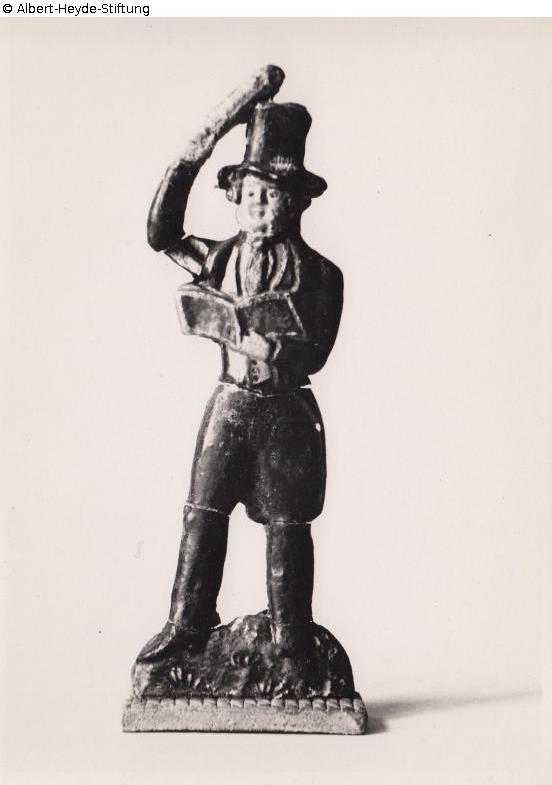 Semi-plastic figure of a choir conductor in a dark coat with a tophat. Tragacanth is a gum-like hardening resin.