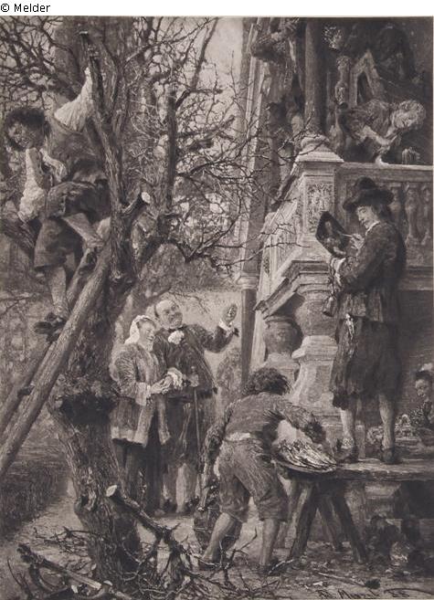 Proven on the list of national cultural assets June 1938, indicated as owner: Galerie Paffrath, Düsseldorf; 1955 property of the art shop Franz Resch, Gauting (cf. exhibition catalogue Adolph von Menzel on the occasion of the 50th anniversary of his death. May to June 1955. Museum Dahlem); sold by Resch to the Georg Schäfer Collection in August 1955