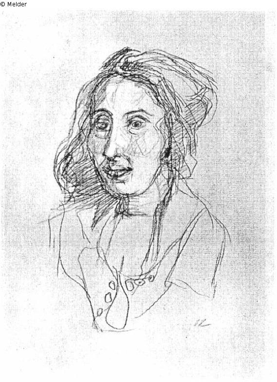 Hervorragend schöne, frische Bildniszeichnung, die Vorzeichnung zur Lithographie mit gleichem Titel, Aentz 103, reproduziert bei Westheim, Abb. 57. Das Blatt dürfte 1917/18 in Dresden entstanden sein. Von der Hand des Künstlers monogrammiert.