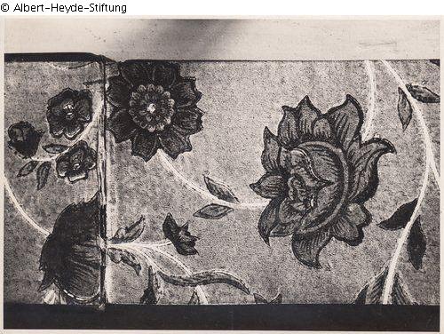 Search Request | Object report Endpapers Lost Art-ID614007 Previous Next TitleEndpapers Dating of document1751-1801Object typeRecords and documentsGroup of reported objectsRecords and documentsMaterial / TechniquePaper (Coloured paper)Inventory number1166Description Coloured endpapers with floral motifs from a family album (1177). Coloured paper "Flower tendrils" Read more Read less Provenance Formerly Uckermark Museum, Prenzlau. Presumably lost during the war in 1945. Read more Read less Published since19.06.2023 Contact Dominikanerkloster Prenzlau Kulturhistorisches Museum Uckerwiek 813 17291 Prenzlau Germany E-Mailmuseum@dominikanerkloster-prenzlau.deHomepagehttp://www.dominikanerkloster-prenzlau.de Contact Dr. Katrin FreyPhone+49 (0) 3984 75 266E-Mailfrey.museum@dominikanerkloster-prenzlau.de