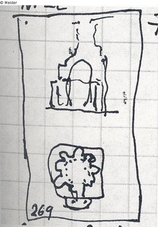 Ink / watercoloured ; drawn (pen-and-ink drawing)