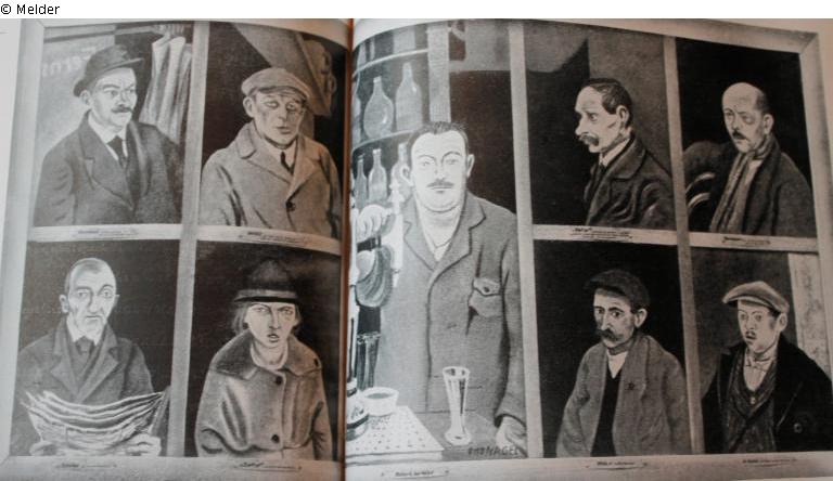 Polyptych consisting of nine single images; single image father, former provincial innkeeper. Has lost three sons in the war. Guard at the guard and lock company, now newspaper seller
