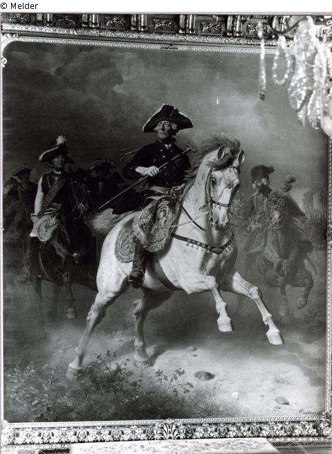 Frederick the Great on horseback to the battlefield of Leuthen, near him Seydlitz, Zietlow and Prince Henry