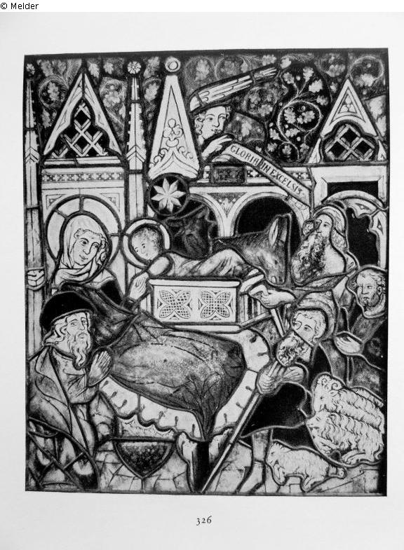 Frühgotische Glassscheibe (Anbetung der Hirten)
