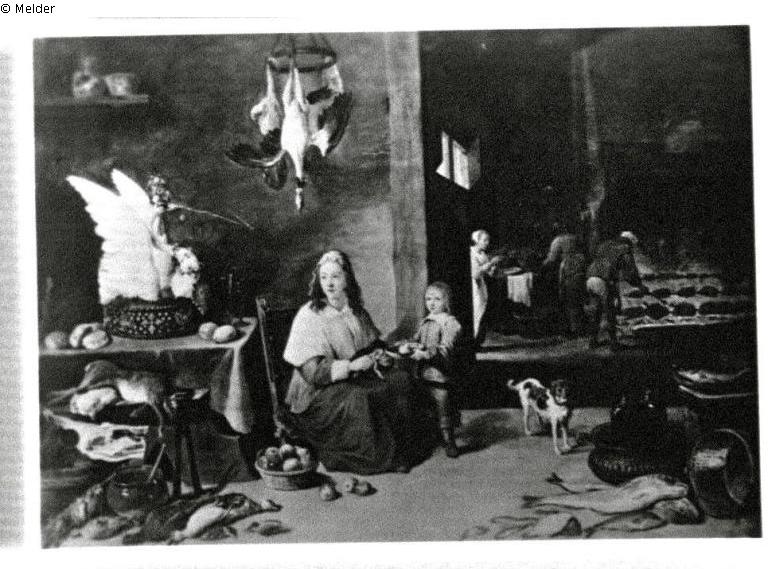 Große Küche mit Vorbereitungen zu einem Festmahl