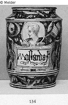 Search Request | Object report Großer Albarello Lost Art-ID451008 Previous Next Artist / Creator Unknown (Italienisch / Castel Durante) TitleGroßer Albarello Dating1541/1560Object typeVesselGroup of reported objectsCrafts and other folk artsMaterial / TechniqueCeramics ; Glaze (Majolica) Height 33.00 cm Description Auf blauem Grund Trophäen in Gelb und Grün, vorn Imperatorenmedaillon, darunter Schriftband, gehalten von zwei Kriegerfiguren Read more Read less Provenance Sammlung Kurt Glogowski, Berlin; Versteigerung bei Graupe 21.12.1935, Nr.134; verlegt auf den 07.01.1936, Einlieferernummer 3; Abb. Tafel 25 Read more Read less Published since23.01.2012 Contact von Trott zu Solz LammekPositionRechtsanwälte NotarPhone+49 (0) 30 59 00 33 0-0E-Mailkanzlei@vontrott-lammek.de