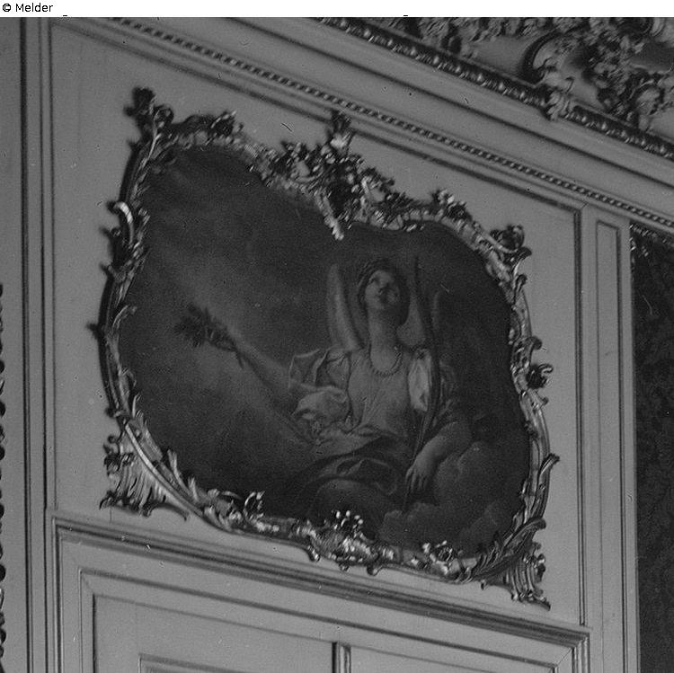 In inventory list no. 1 of 31 January 1920 as part of the settlement agreement between the Free State of Saxony and the former royal house of 1924; In the specifications for salvage on 27 December 1943, Prof. Fichtner's report to the Reich governor specified under point 6 the rRemoval of the overdoors. The removal of the four overdoors from the audience chamber with further 18 overdoor paintings and 12 overdoor frames to the relocation site at Brauna Castle on 12 June 1944 is on record; According to the records, they were lost at the relocation site.