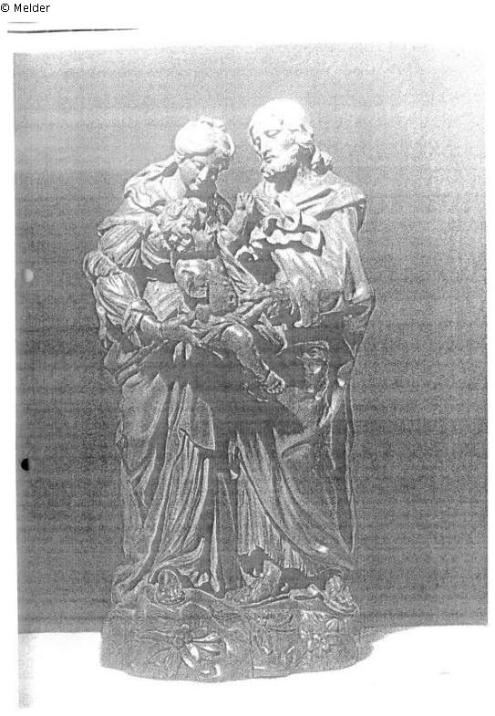 Search Request | Object report Heilige Familie / Saint Famille Lost Art-ID451621 Previous Next Artist / Creator Unknown TitleHeilige Familie / Saint FamilleObject typeSculptureGroup of reported objectsSculpture Height 38.00 cm Width 20.00 cm Description Skulptur Read more Read less Provenance Sammlung Graupe und Cie Paris; Beschlagnahme durch den Einsatzstab Reichsleiter Rosenberg (ERR) in Paris, Place Vendôme, 1941/42 Read more Read less Published since20.02.2012 Contact von Trott zu Solz LammekPositionRechtsanwälte NotarPhone+49 (0) 30 59 00 33 0-0E-Mailkanzlei@vontrott-lammek.de
