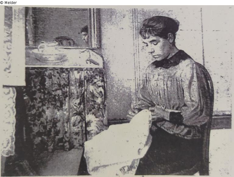 Jeune femme cousant / Young woman sewing