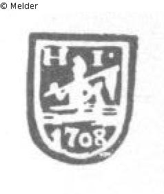 Pewter jug of the fishermen's guild with screw lid, the spout in the form of a dolphin's head. Marked on the front bowl: Johann David Naumann / Johann George Naumann / Johann Samuel Naumann / Johann Kaspar Krause / 1746. Marked on the lid and the handle with Dresden city mark and as well as two signs.