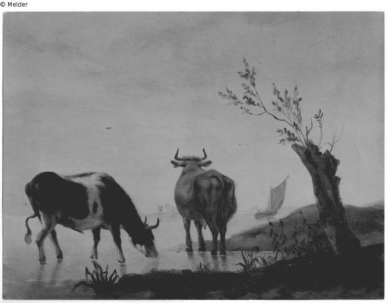 Koeien (NA, SNK 2.08.); Cows by the water.